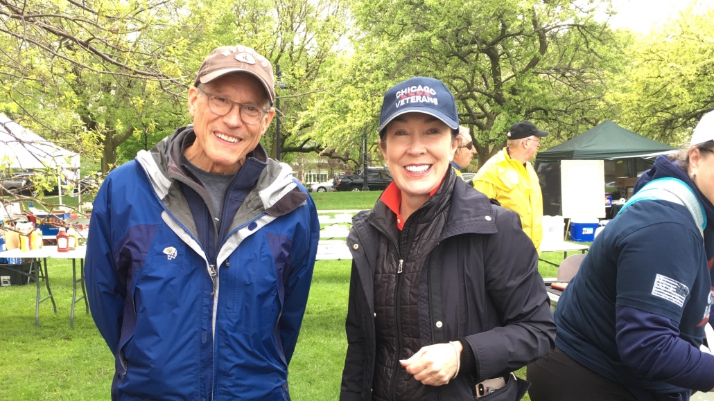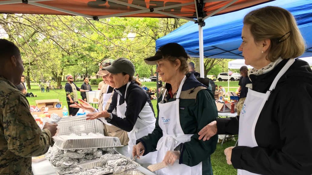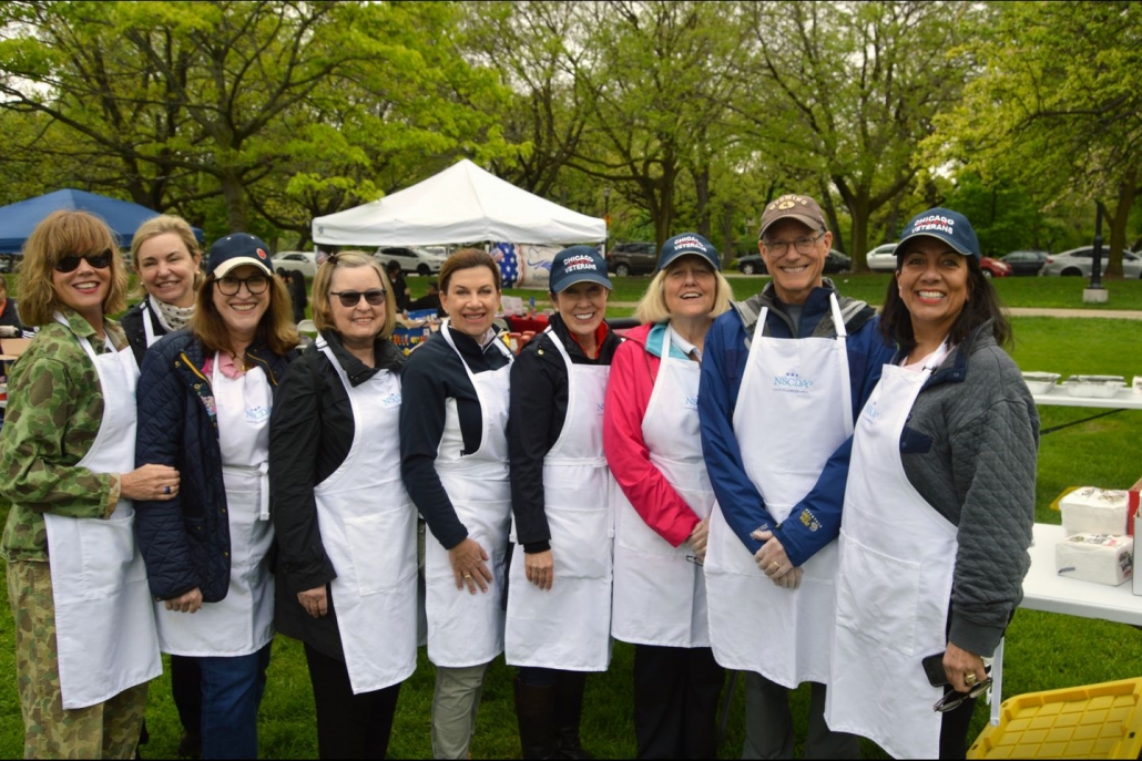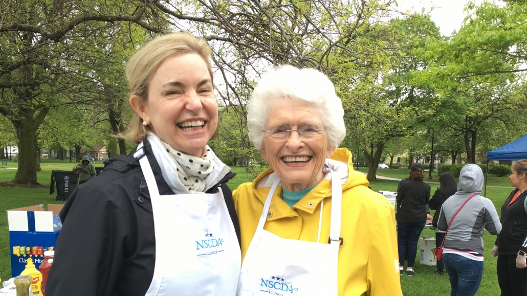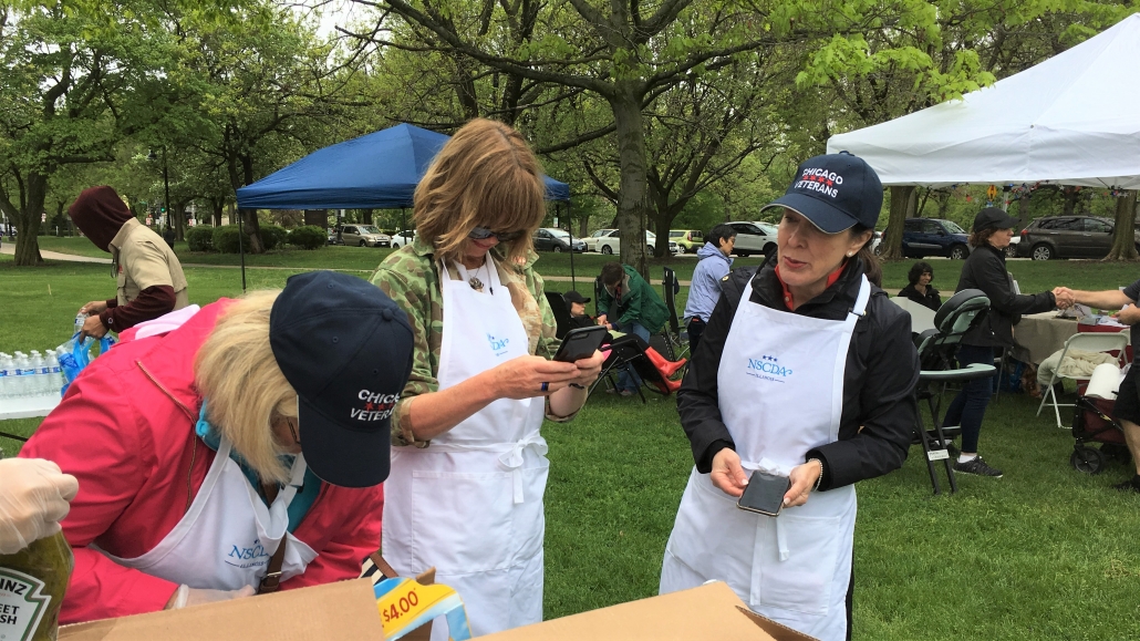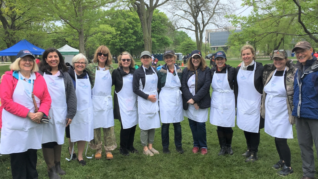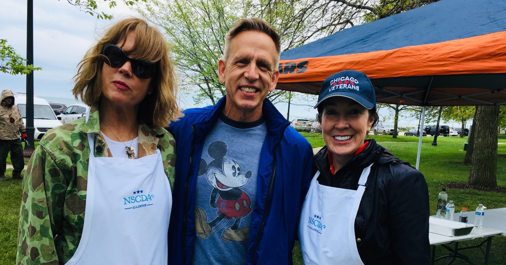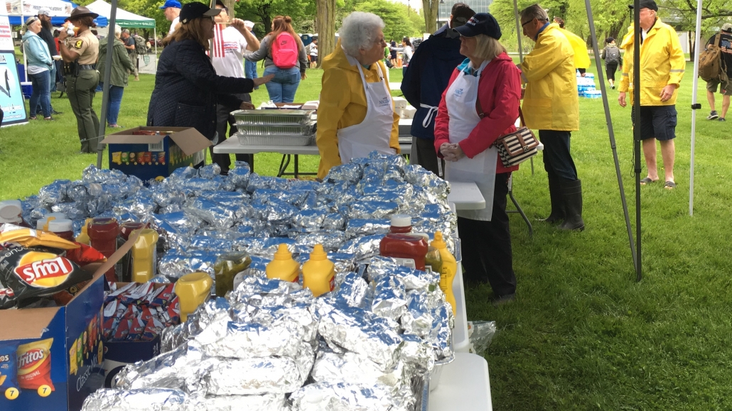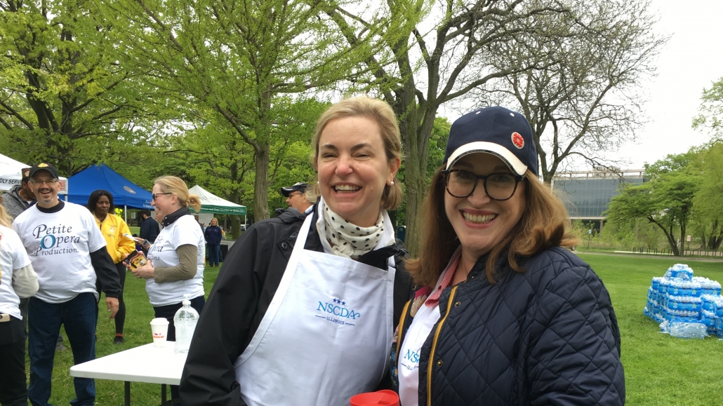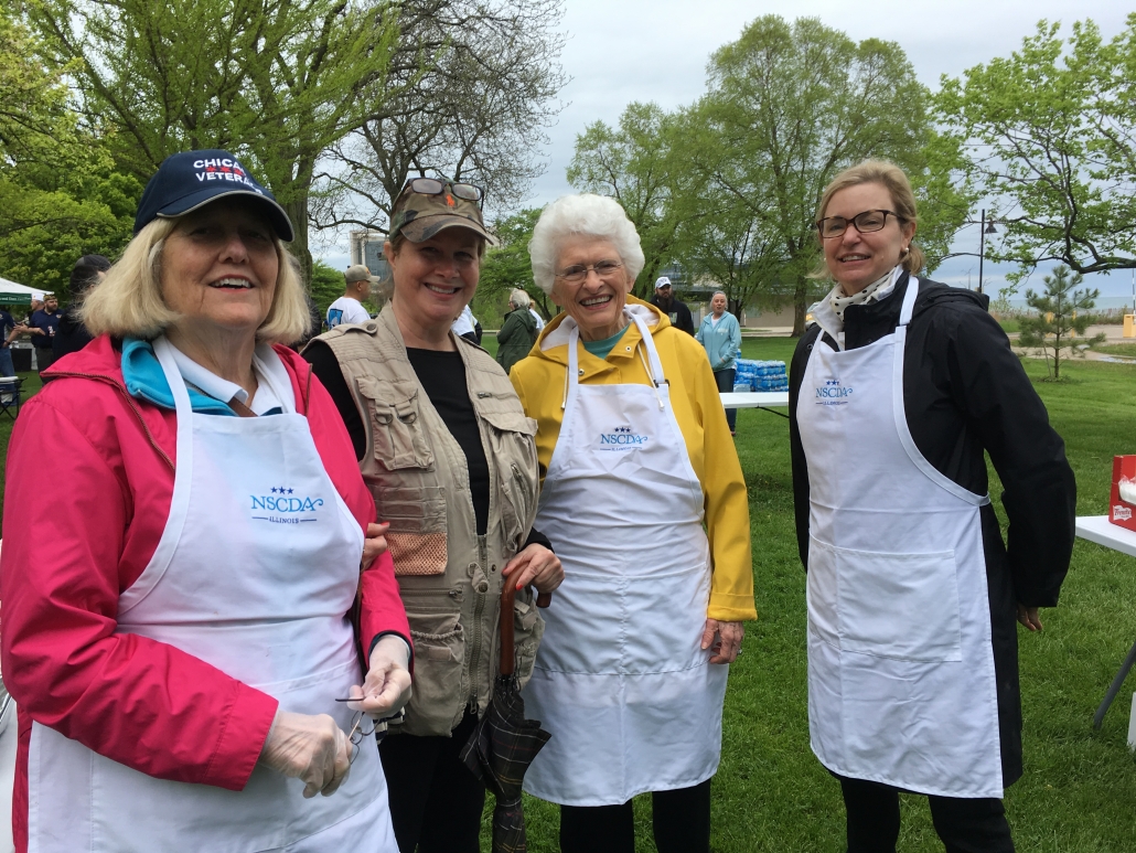 For the second consecutive year, NSCDA-IL underwrote and helped serve an abundant al fresco picnic lunch for march participants and volunteers. With the help of Chicago Veterans, an inordinate quantity of grilled hot dogs was devoured by 2400 famished and weary walk participants, along with copious amounts of pasta, assorted chips/pretzels/caramel corn, untold amounts of condiments, water, fresh fruit and more. Extraordinary team spirit and irrepressible enthusiasm were the orders for the beginning of this Memorial Day weekend.