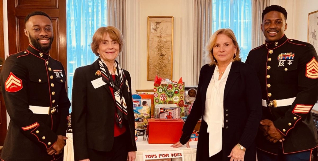 Since 2016 the Illinois Dames have supported of the U.S. Marine Corps Reserve’s Toys for Tots program.  At the Society’s annual holiday meeting, a Marine accepts a substantial donation of new, unwrapped toys and cash, providing joy for disadvantaged children and their families during the holiday season.
