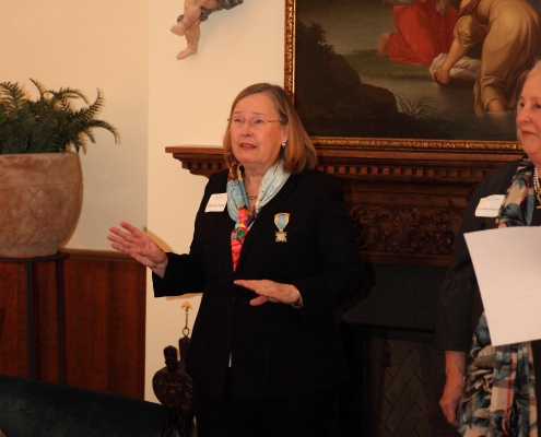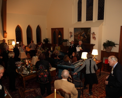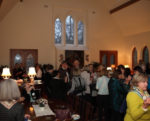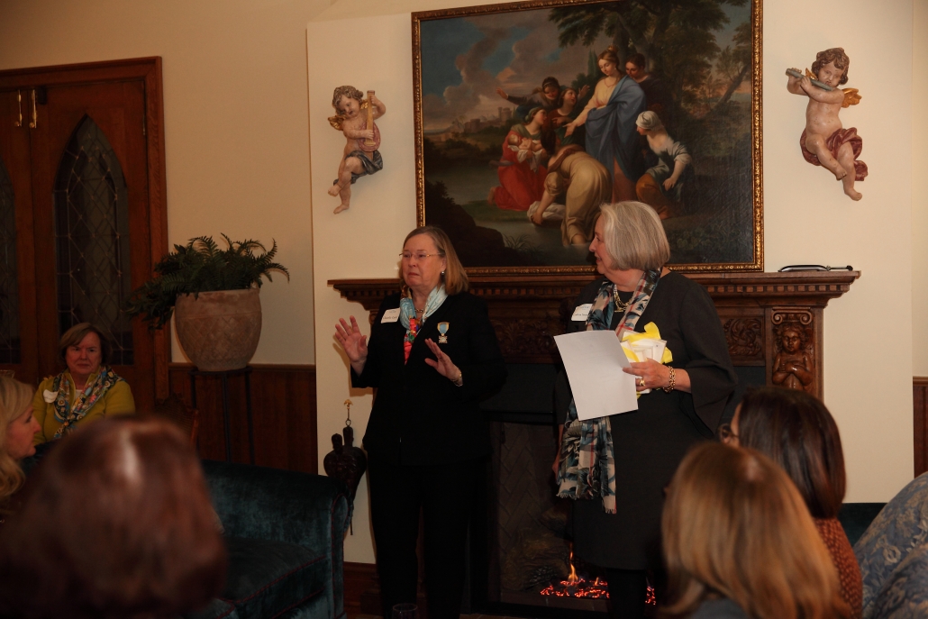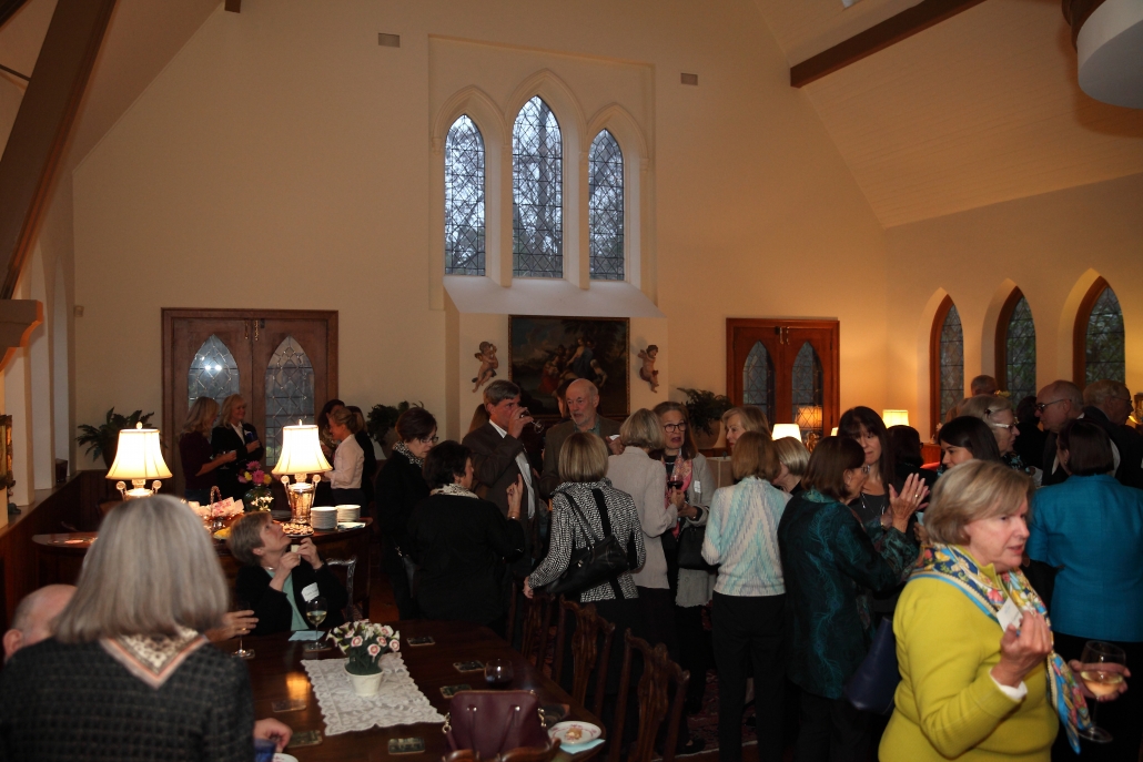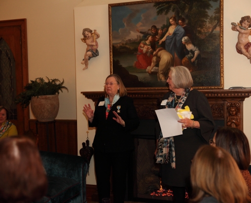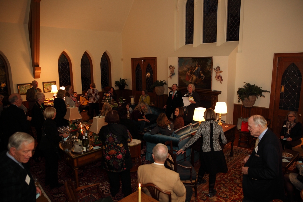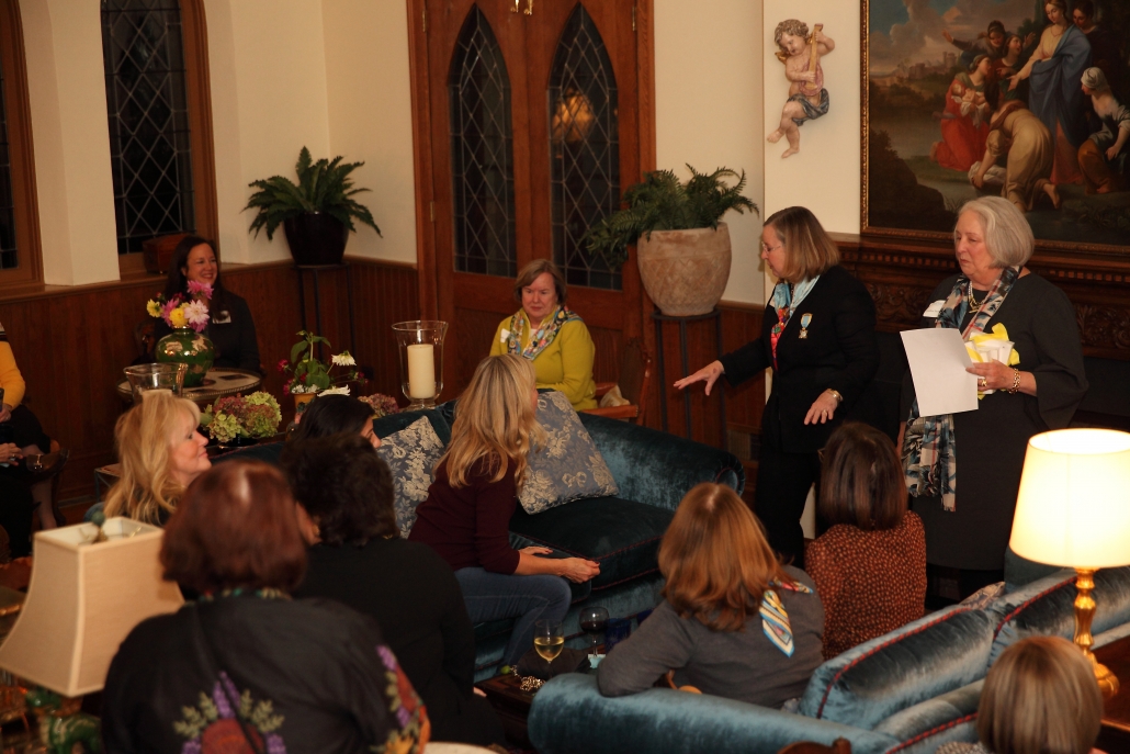 With temperatures plummeting and the holidays nearing, Dames and their guests enjoyed a perfect fall weekend for the Illinois Society’s November 3rd Wine & Cheese Welcome Party. Our special thanks to Anne and Paul Krauss for so generously hosting. Guests were warmly welcomed in the spectacular, historic Krauss residence, with 50 revelers enjoying good cheer and a delightful gathering among friends.